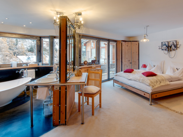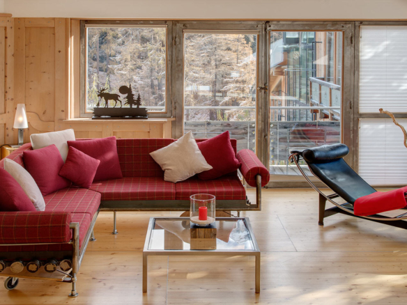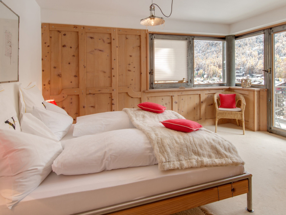 Apartment Red is approx. 125 sq m all on one level, uniquely designed by Heinz Julen.