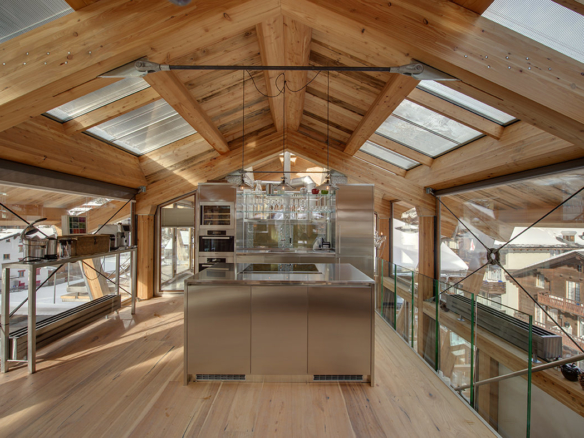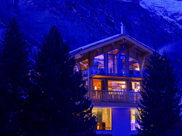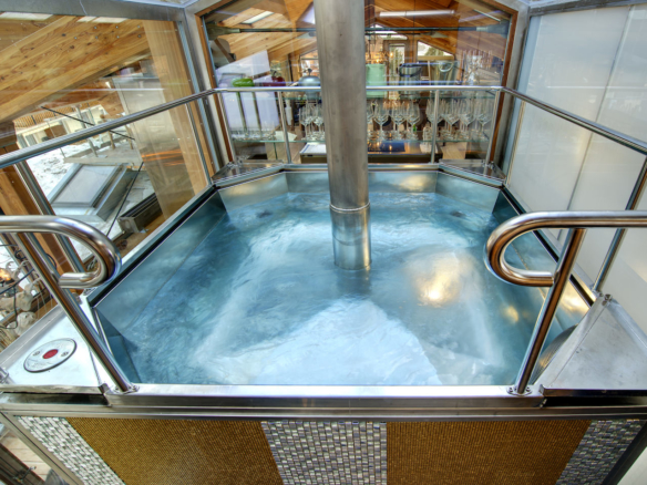 Unique in design, another Heinz Julen creation – be wowed by the incredible hot tub which rises in to the sky above the chalet roof at the press of a button!