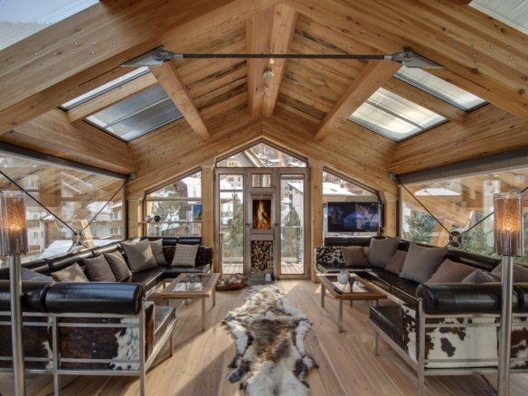 The chalet is based on an old Valais house dating from the 1940s. Heinz Julen, highly acclaimed Swiss designer and architect, has modernised and extended by two storeys this chalet in line with the nature of the building.