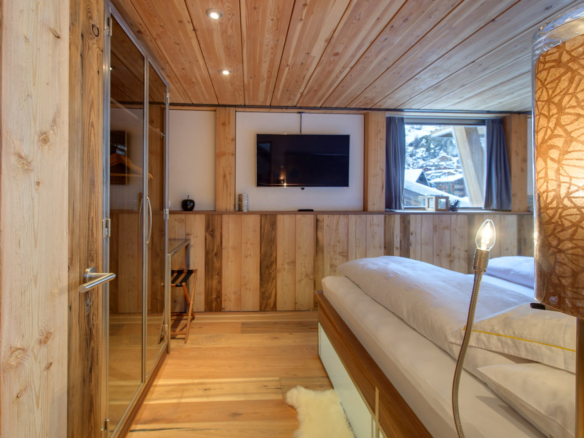 Naturally all the furniture and furnishings have been developed and manufactured in the Heinz Julen studio in Zermatt. The chalet is moreover equipped with contemporary art from Zermatt’s art rooms. Here Heinz focuses on coziness and tradition, blended with a modern-day flair, in an impressive manner, making you instantly feel at home. With all its originality and innovation, the Backstage chalet is redefining the term “5-star luxury chalet” in Zermatt.