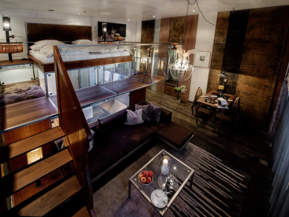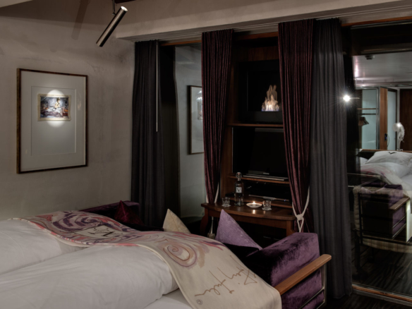 The Backstage Hotel, Zermatt, is absolutely unique! Complete with a cinema in the lower floors! A luxurious boutique hotel with only 19 rooms. It was designed and built by Heinz Julen and his signature workmanship can be seen throughout the hotel, in fact all the furnishings were hand crafted at his workshop here in Zermatt. Quality and design go hand in hand.
