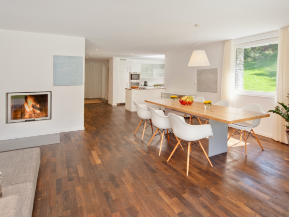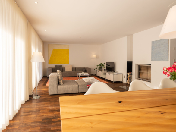 This apartment of 155 sq m is a very spacious apartment with large, south facing, patio doors onto a terrace and garden, with spectacular views towards the Matterhorn.