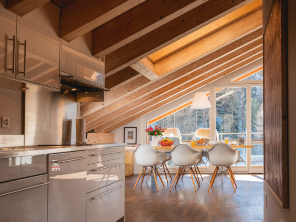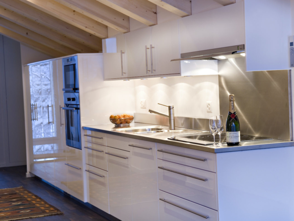The galley style kitchen is very well equipped with an induction cooker, microwave, dishwasher, large fridge and Nespresso coffee machine. WiFi is throughout the Chalet Altesse.