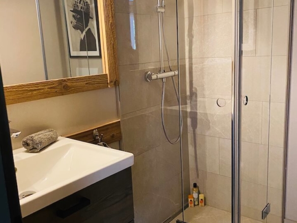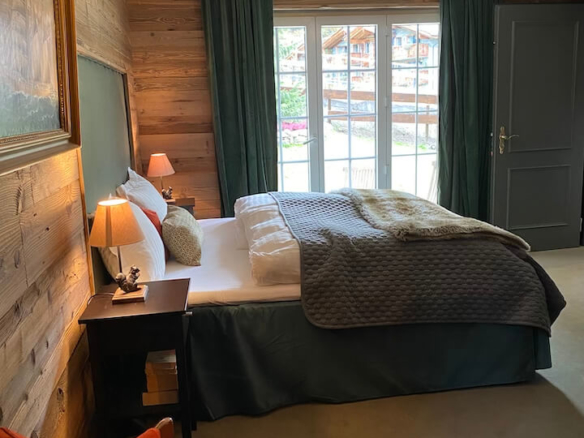 The ground floor, two bedroomed Stein Eriksen suite has a sunny garden terrace with a beautiful Matterhorn view. The interior is a chalet-lodge style with historical elements and plenty of cosy fabrics, making for a very homely feel. With access direct to the garden this apartment is perfect for families, or 6 adults, with the master bedroom having an ensuite bathroom.