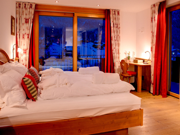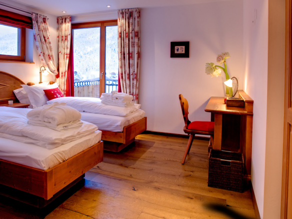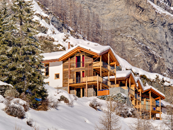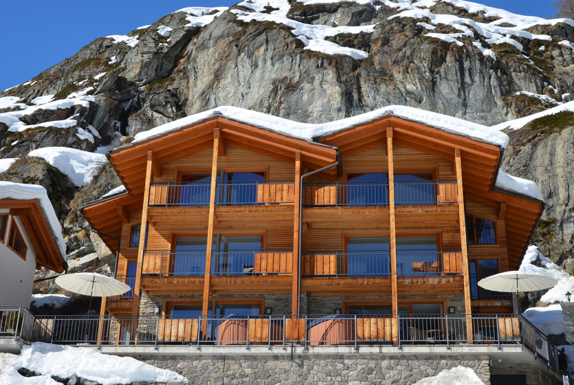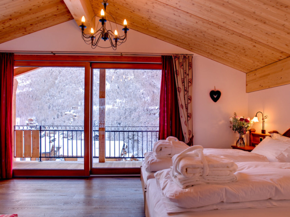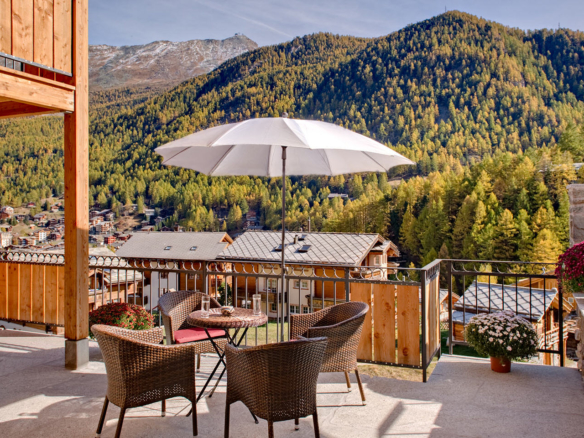 Side by side, tucked against a beautiful hillside, the numerous balconies and large terraces give you bird’s eye views of the village and the surrounding mountains, encompassing all 3 of Zermatt’s ski areas. Although it does not have a Matterhorn view, the sun baths the chalet is as soon as it emerges. Chalet Castor is immediately opposite Chalet Gemini.