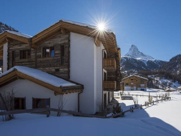 While the adults enjoy a glass of champagne on the terrace and take in the wonderful views of the Matterhorn, the children can play in the snow right in front of the chalet.
