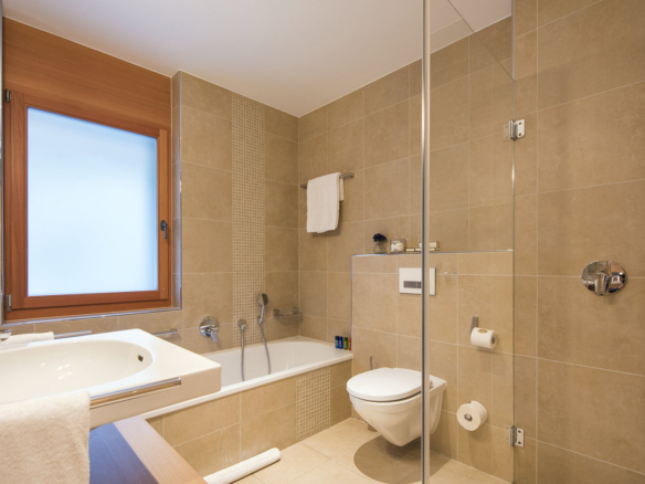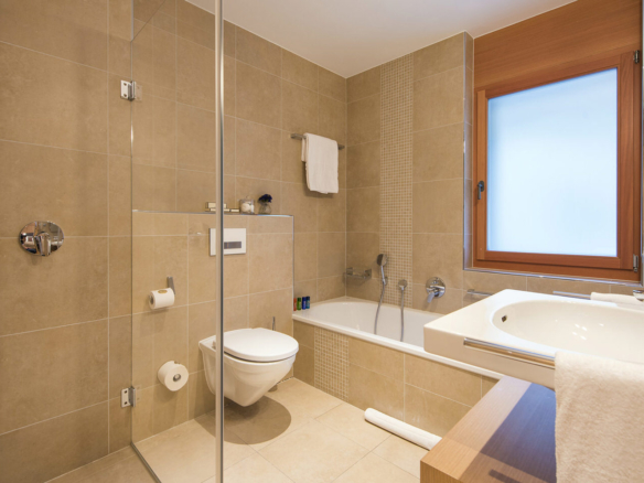 Equipped with the finest Egyptian cotton linen, bathrobes, slippers, and luxury bathroom products, this sophisticated apartment provides the perfect alpine retreat.