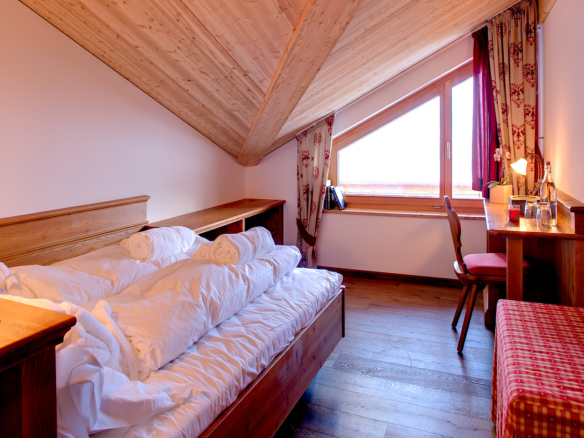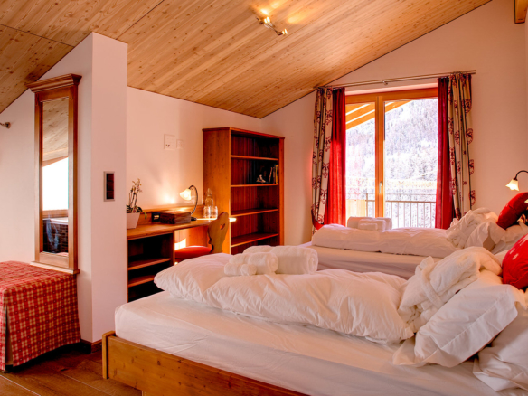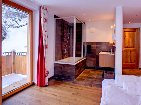 Chalet Gemini is a luxurious free standing three storey chalet with 5 double bedrooms, large enough for families or groups of up to ten. Four bedrooms can be configured as twins, and all have en-suite bathrooms and TV. There is also a private sauna and wellness area and an outdoor jacuzzi on the large private terrace.