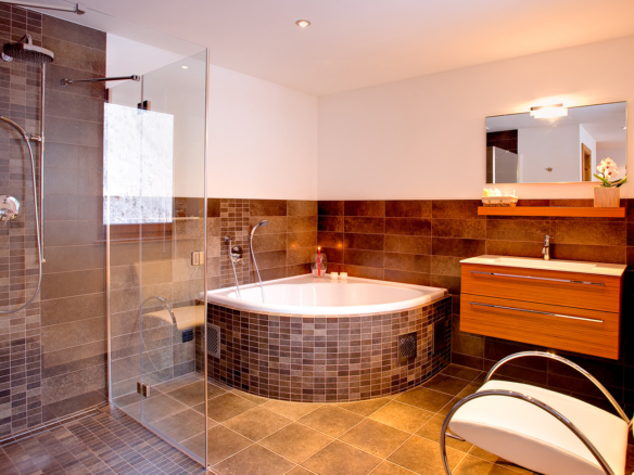 The chalet is tastefully decorated, delicately combining an alpine, cosy and contemporary finish, with liberal use of wood and stone.