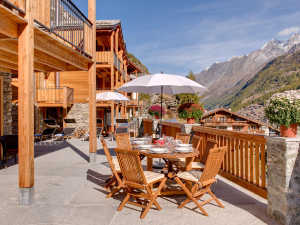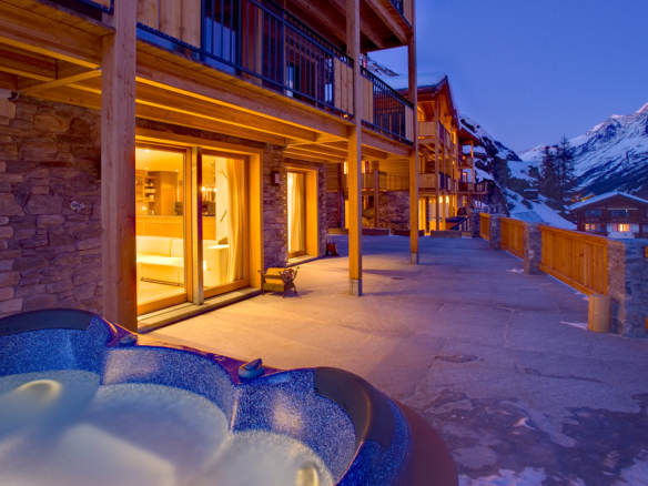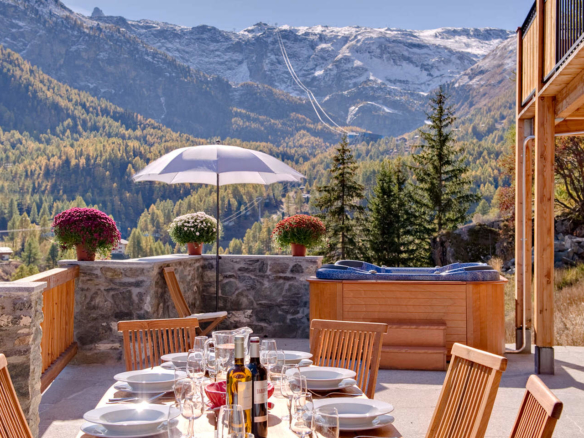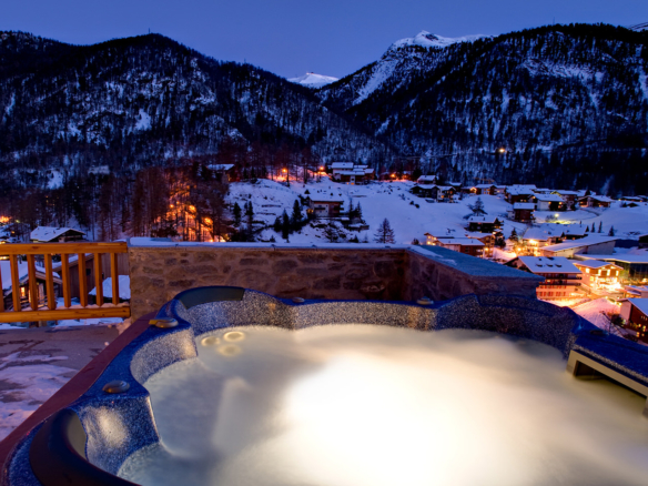 Chalet Gemini – a luxury 3 storey, freestanding, chalet overlooking Zermatt. Chill out with a glass of champagne in the private outdoor hot tub and soak up those holiday memories!