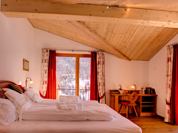 Tucked against a beautiful hillside, the numerous balconies and large terraces give you bird’s eye views of the village and the surrounding mountains, encompassing all three of Zermatt’s ski areas. This is an ideal location being close to the main lift station, the ski runs and the village centre. Chalet Gemini is immediately opposite Chalet Castor.
