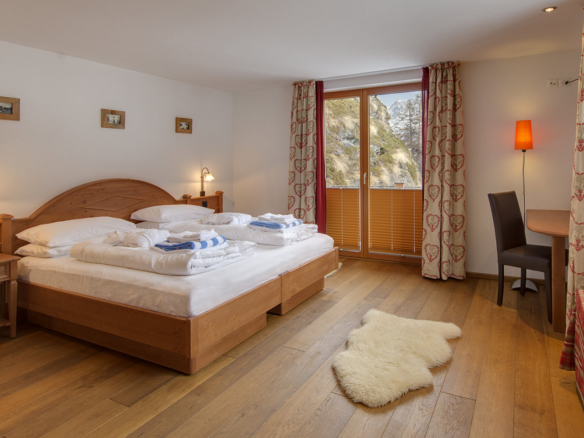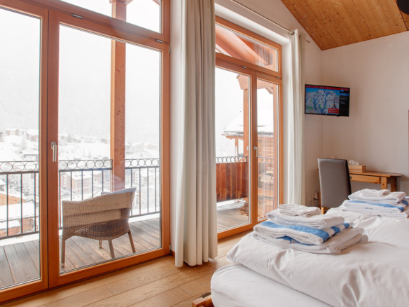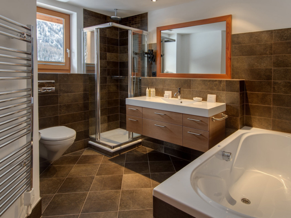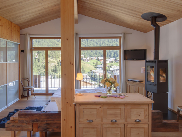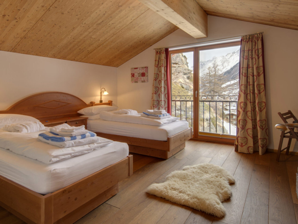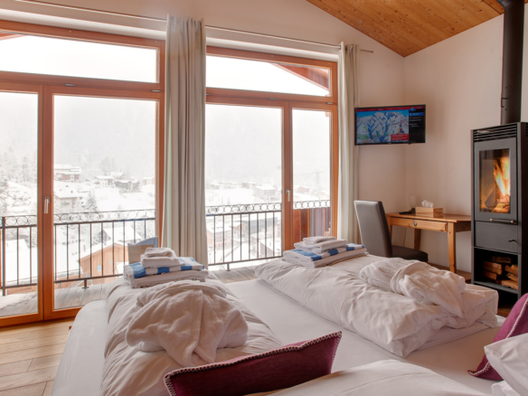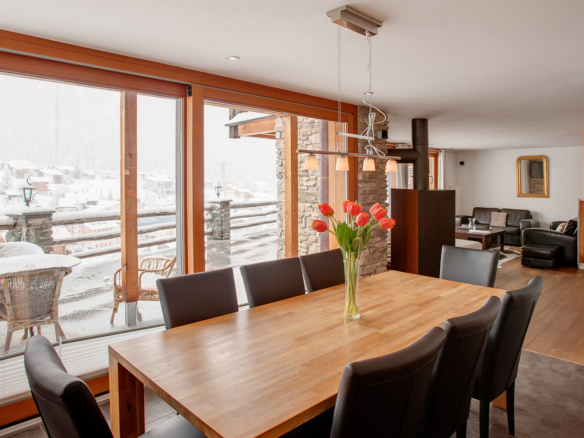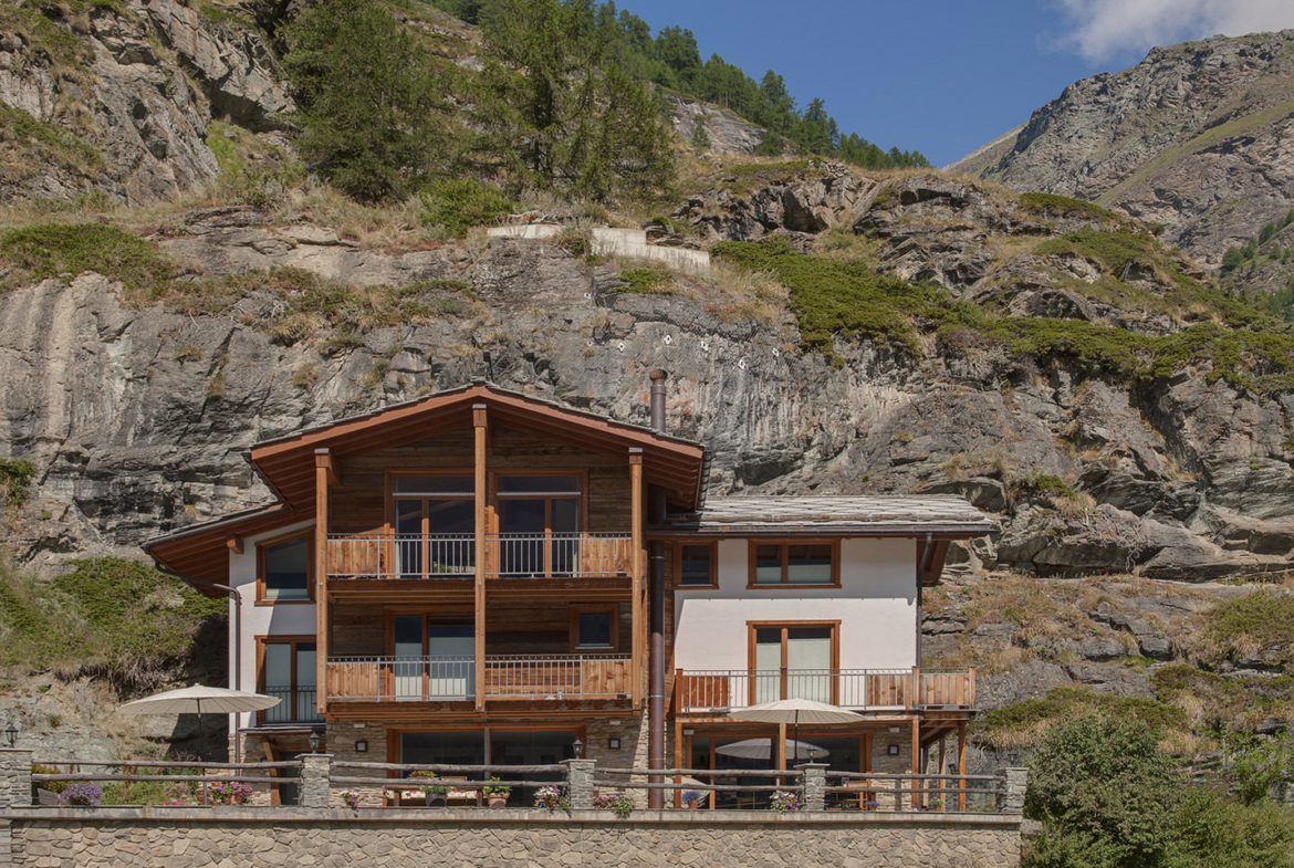 Side by side, tucked against a beautiful hillside, the numerous balconies and large terraces give you bird’s eye views of the village and the surrounding mountains, encompassing all 3 of Zermatt’s ski areas. Although it does not have a Matterhorn view, the sun baths the chalet is as soon as it emerges. Chalet Ibron is immediately opposite Chalet Pollux.