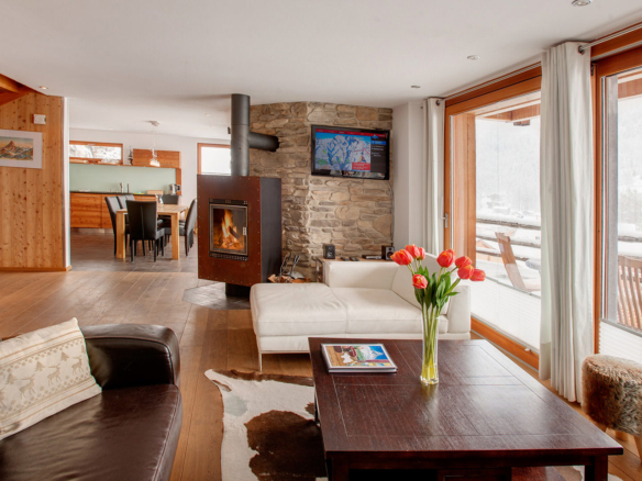 The chalet is tastefully decorated, delicately combining an alpine, cosy and contemporary finish, with liberal use of wood and stone.