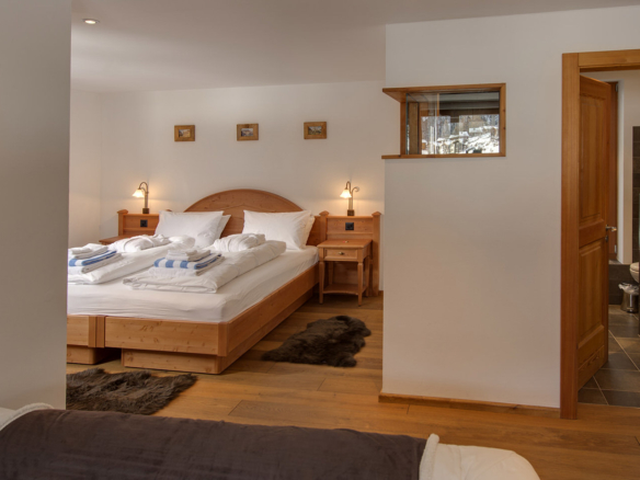 A luxurious free standing three storey independent chalet with 4 double bedrooms, 3 bathrooms and a sauna, large enough for families or groups 8. All the beds can be configured as doubles or twins.