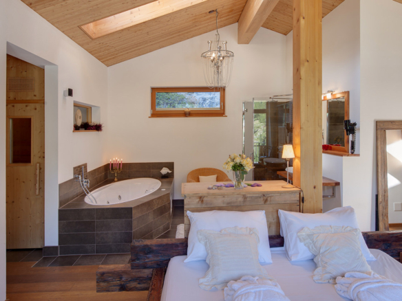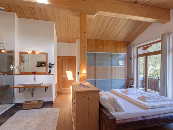 It has the most luxurious and spacious master bedroom, with an open bath-tub, separate shower, separate WC, and en-suite sauna, perfect to relax after a long day in the mountains.