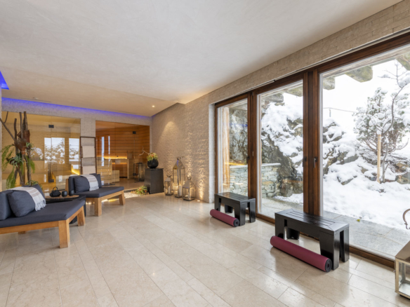 With one of the most enviable of private indoor Spa areas found in the Alps including a sauna, hammam steam room, massage room, and a marble clad relaxation area. Additionally offering ambient light scenes, a fountain and ornamental pool, you can experience absolute bliss at any time you please.