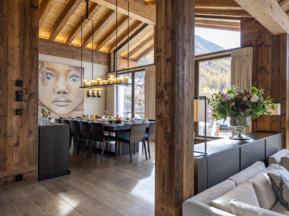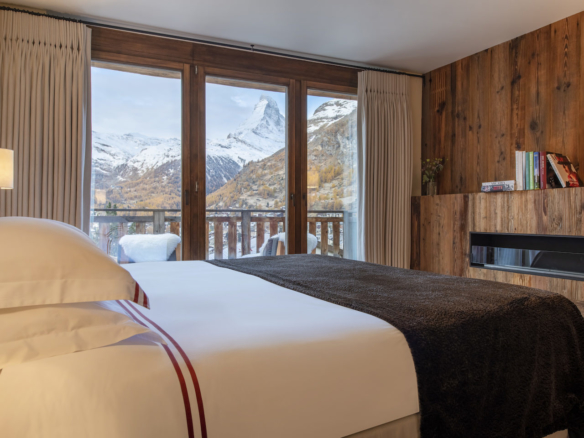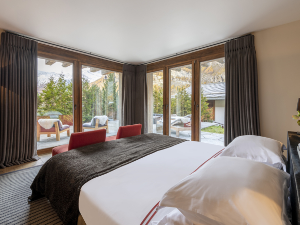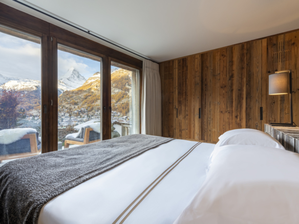 Iconic pieces from renowned designers are all on show throughout the living areas. Only the highest quality natural fabrics and materials have been used throughout. Guests will also notice hand-sculpted Matterhorn stone features in the chalet exterior.
