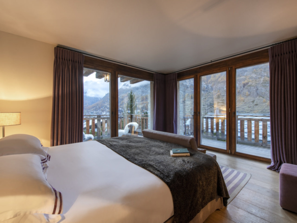 Bedrooms: ARCHANGEL - King-size double bed with direct view of Matterhorn, En-suite bathroom with bath and separate shower with massage jets and rain shower. Private balcony with view across Zermatt to Matterhorn. Bio-fuel fireplace. EROS - King-size double bed, En-suite bathroom with bath open plan to bedroom, separate shower with massage jets and rain shower Private balcony with view across Zermatt to Matterhorn Bio-fuel fireplace. CHERUBIM - Twin or super-king size double bed, En-suite bathroom with bath and shower. Private balcony with views across Zermatt to Matterhorn. SEARAPHIN - Twin or super-king size double bed, En-suite bathrooom with rain shower. Two private balconies, views across Zermatt to Matterhorn. PUTTI - King-size double bed, En-suite bathroom with rain shower and Petit Village views.