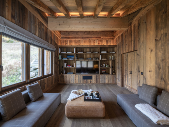Great care has been taken to create a warm and cosy ambiance utilising the expertise of leading international lighting consultants. Chalet Les Anges’ modern contemporary style is counterbalanced by the reclaimed wood throughout, and the symmetry of the furniture to enhance the feeling of warmth and serene luxury.