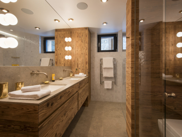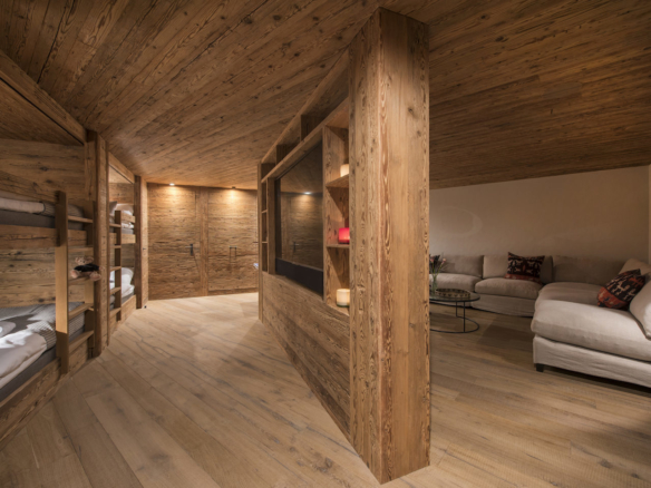 The first floor sets the scene of a tranquil mountain sanctuary. There is a simplicity in design which is perfectly harmonized with cosy, alpine-inspired features. There are three double bedrooms, all with en-suite shower rooms. Two of the bedrooms have small dressing rooms, and all feature private balconies which open up to the wonderful views of Zermatt. A small staircase from this floor leads to the playroom which has an impressive revolving TV, day beds, and a separate shower room. The second floor is home to the two master bedrooms.