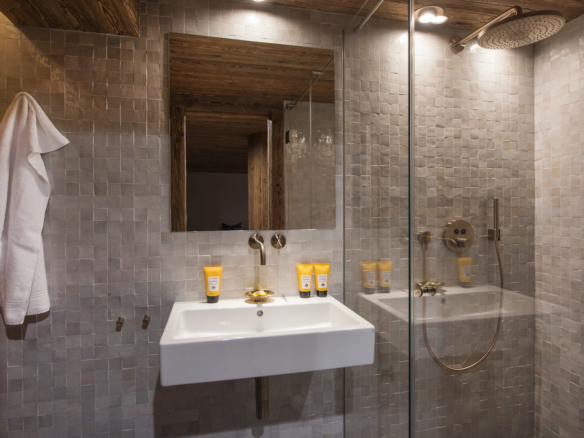 You enter the 7 Heavens’s residences through the impressive entrance hall leading into the lobby and central living room. Here you will find a wonderful relaxation area with bar ideally positioned in front of the roaring fire. On the upper floor of the central living room there is a state of the art gym with the latest equipment and plenty of space for an after-ski workout.