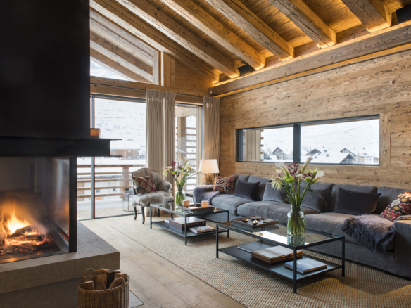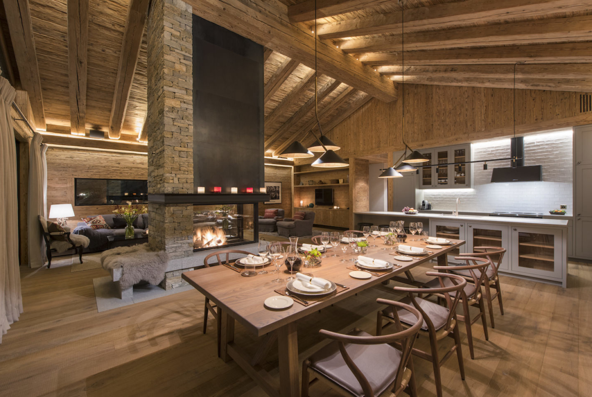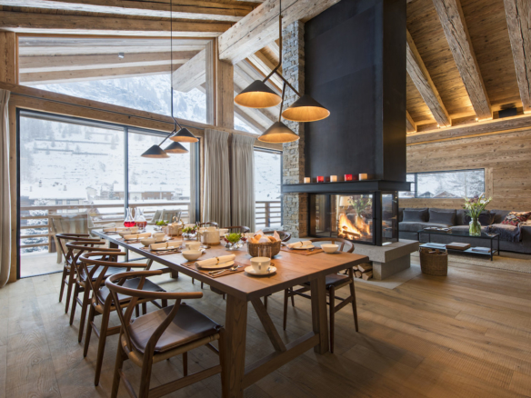Gazing over Zermatt, the top floor provides an idyllic platform for experiencing panoramic views of both the village and the majesty of the surrounding mountains. The open plan living and dining area is the pinnacle of contemporary alpine design.