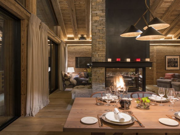 Sophisticated and stylish, the wood burning fire place is perfectly positioned in the heart of the sitting room. Floor to ceiling windows open out onto the large balcony, which has a stylish seating area perfect for enjoying an aperitif while watching the sun go down in the evening. The dining room caters for wonderful evening meals, and for maximum privacy the chef can work in the professional kitchen on the ground floor of the property.