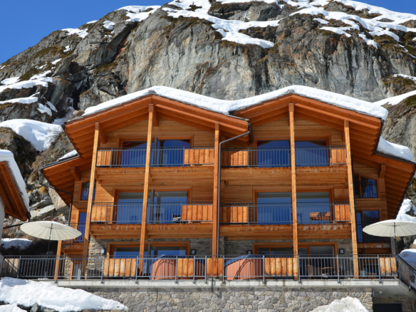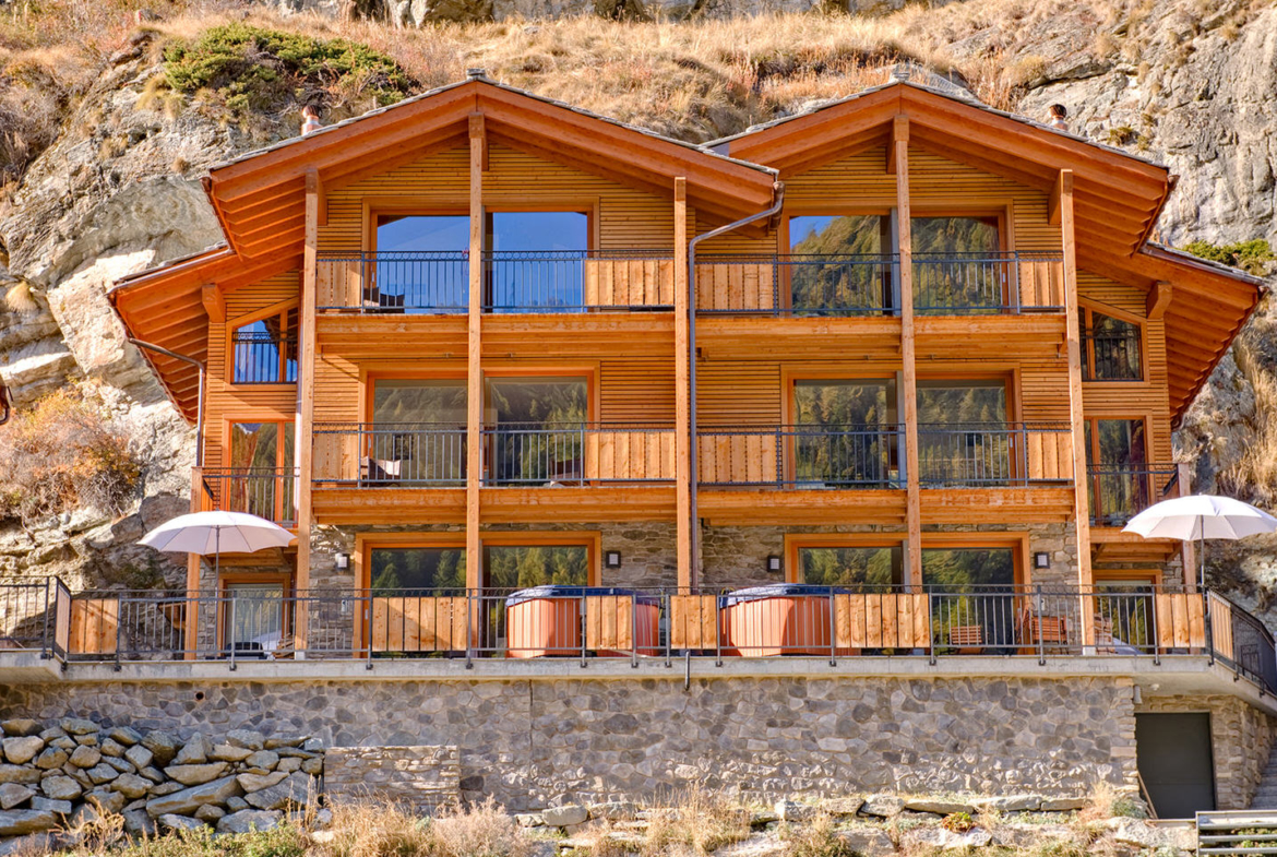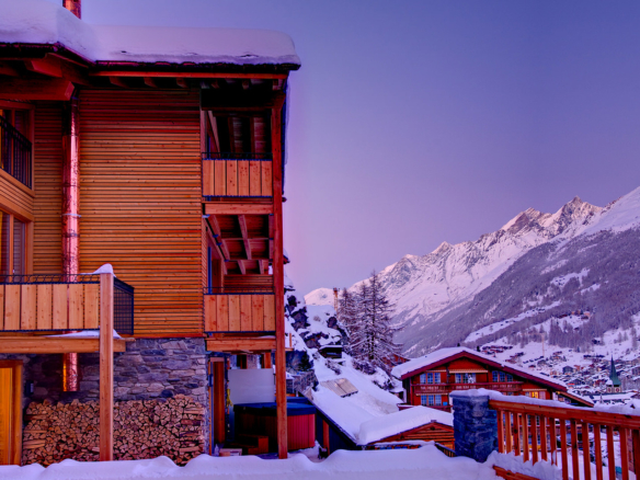 Side by side, tucked against a beautiful hillside, the numerous balconies and large terraces give you bird’s eye views of the village and the surrounding mountains, encompassing all 3 of Zermatt’s ski areas. Although it does not have a Matterhorn view, the sun bathes the chalet is as soon as it emerges. Chalet Pollux is immediately opposite Chalet Ibron.
