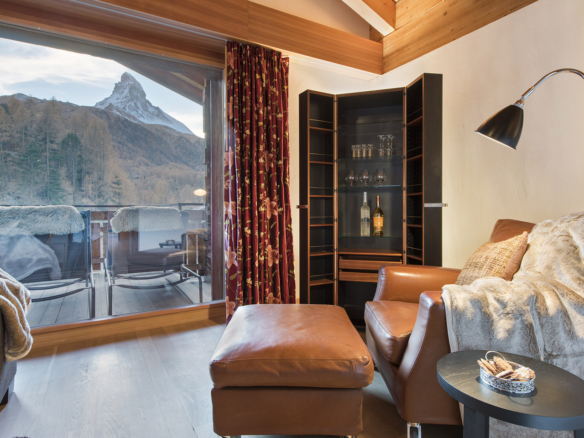 The spacious balconies afford breathtaking views of the Matterhorn providing the perfect backdrop for a pre-dinner drink or for soaking in the rays in the warmer spring months.