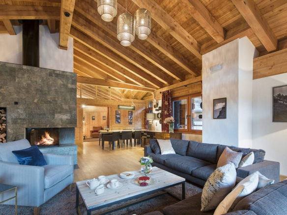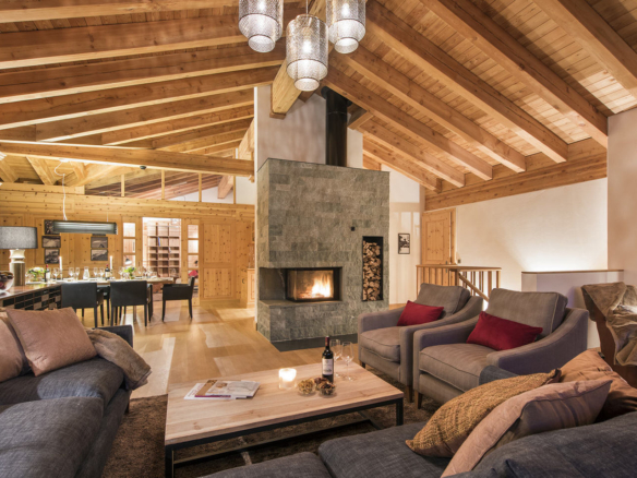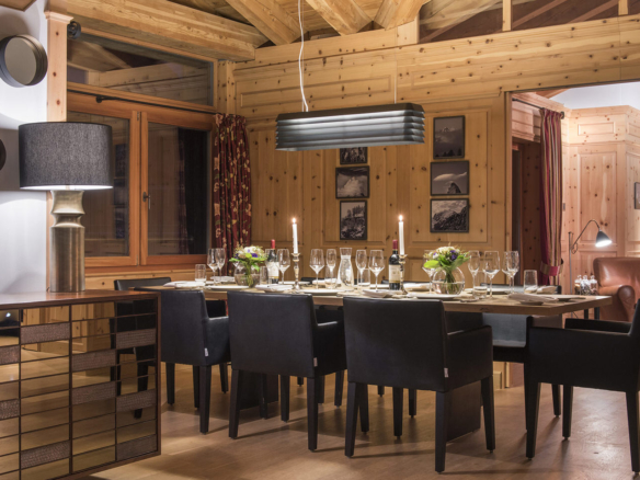 After the sun sets, relax and unwind on the sumptuous sofas in front of the roaring fire. When the chalet is taken as a whole, one side of the top floor is transformed into the main dining room seating 20 people comfortably and the other side is transformed into the main living area.