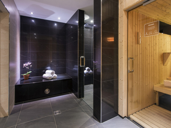 The wellness and spa area in Chalet Shalimar is at the heart of the property with an indoor swimming pool affording wonderful views of the Matterhorn, sauna, hammam, and a massage room all on the ground level of the chalet.