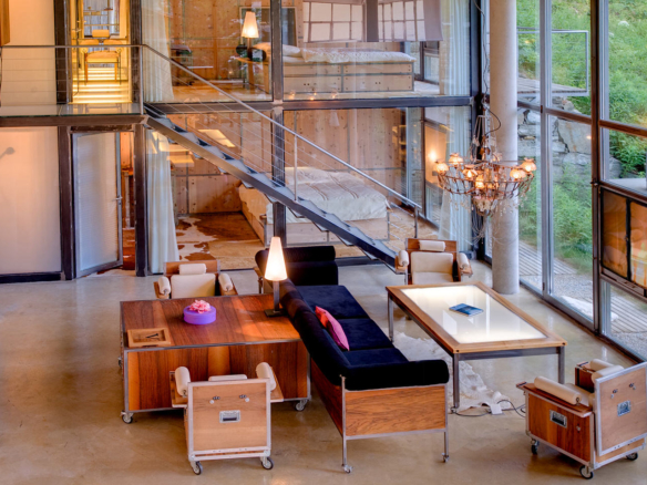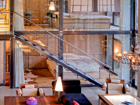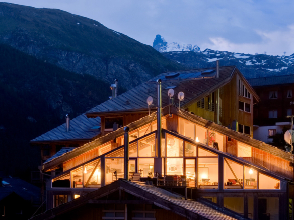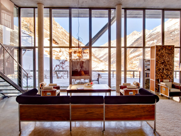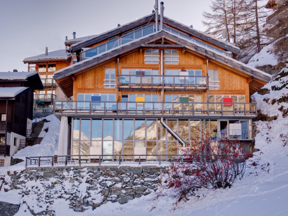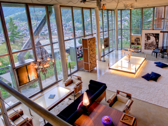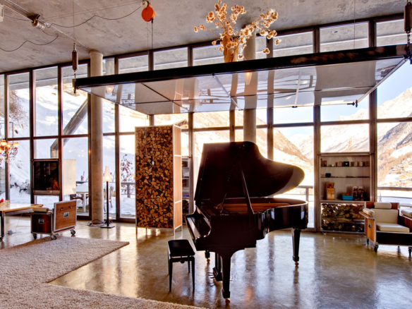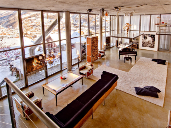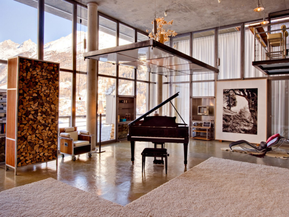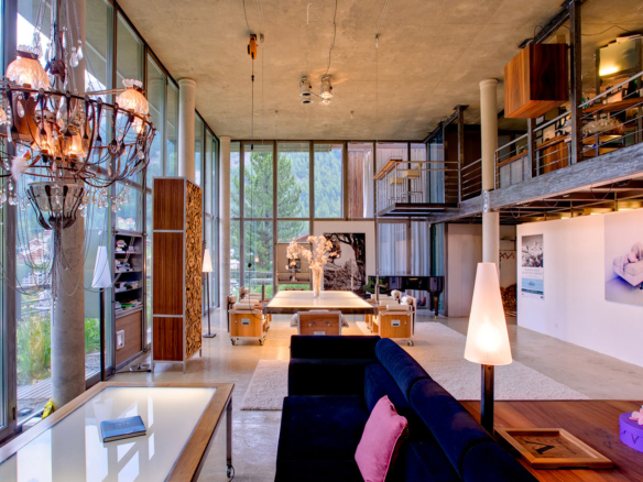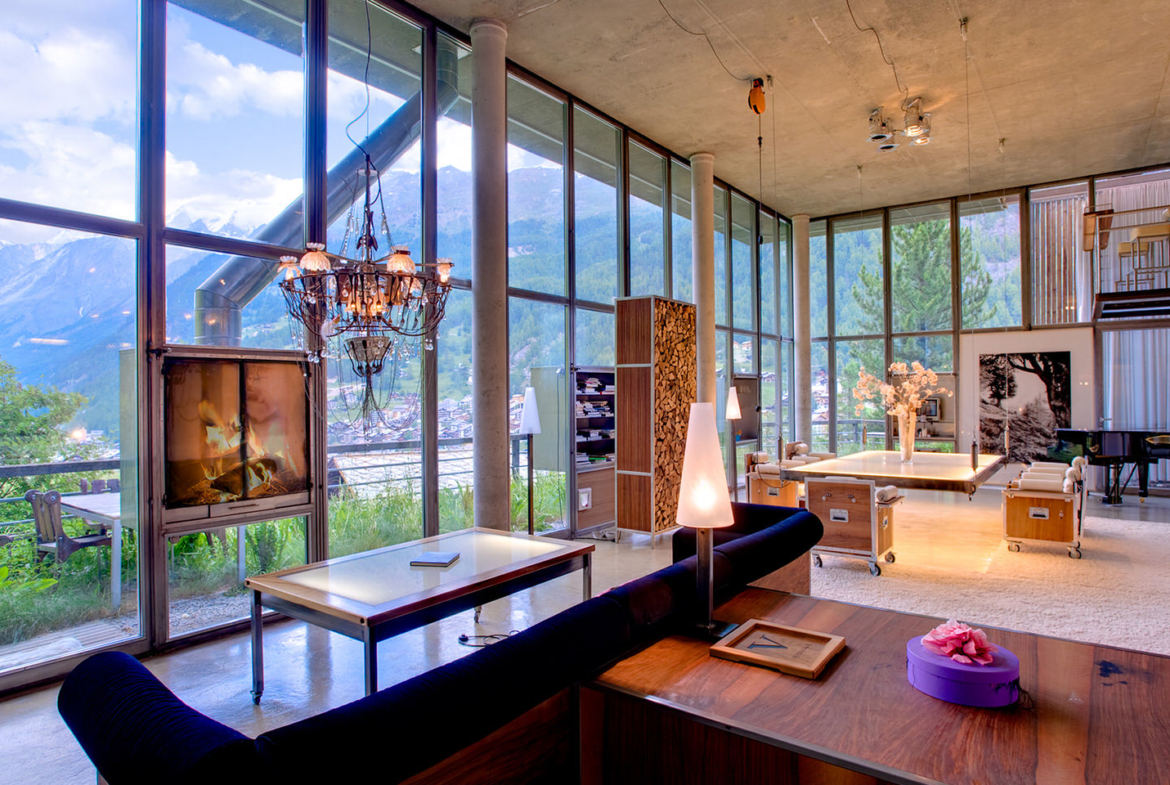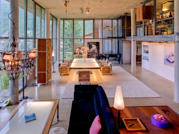 Heinz Julen Loft is, without doubt, one of the most spectacular properties in Zermatt! A huge 300 sq m Manhattan style loft set in a wooden chalet in the Swiss Alps; it combines acres of glass, steel, textured concrete and wood in a unique symphony of fusion, architecture created by the local ‘star designer’ Heinz Julen. Once a private home, the Heinz Julen Loft is now available as a truly unique holiday rental property.