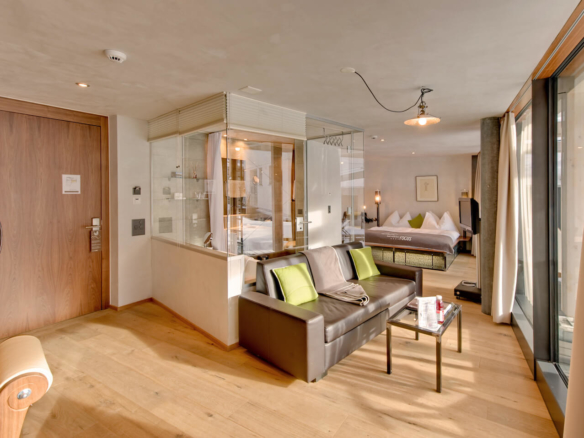 The 30 rooms and suites, housed in 3 separate but interconnected buildings, have all been creatively designed by the award winning local designer Heinz Julen. His style is present throughout this unique hotel which brings something special to your vacation.