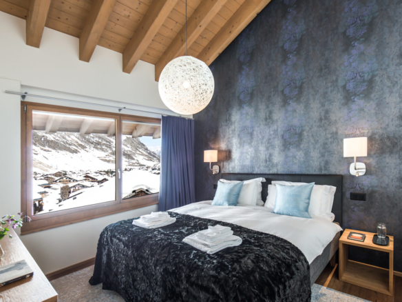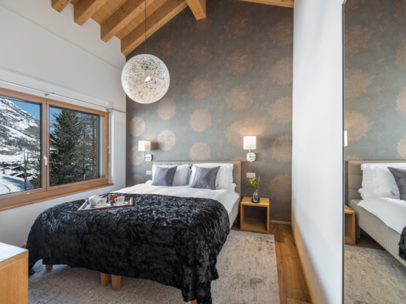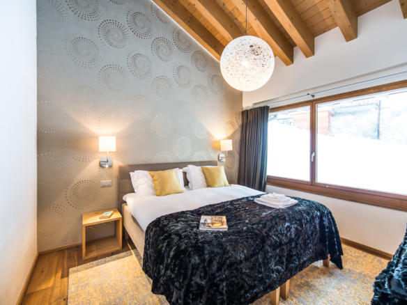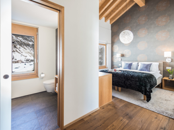Fusing contemporary and classical Alpine design with the spirit of the mountains, Chalet Valeria evokes a feeling of peace and tranquility. Penthouse Aria, in Chalet Valeria, provides accommodation for 8 guests, this exquisite 240 sq m penthouse apartment is centrally located and has stunning views of the Matterhorn and over the village of Zermatt. It combines Oak and natural stone features with contemporary design.