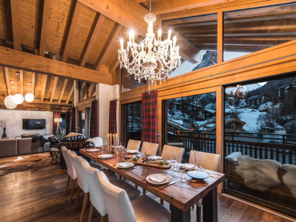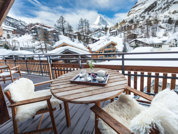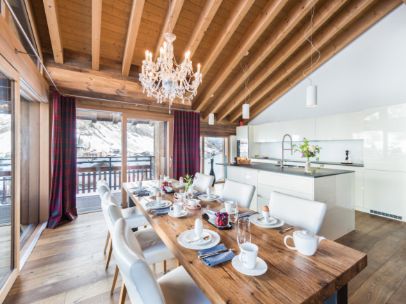 A stunning penthouse apartment with exquisite views over the roof tops of Zermatt towards the Matterhorn and the village. Penthouse Aria fuses contemporary with classic alpine design and sleeps up to 8 guests comfortably.