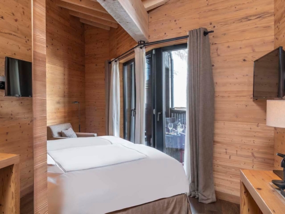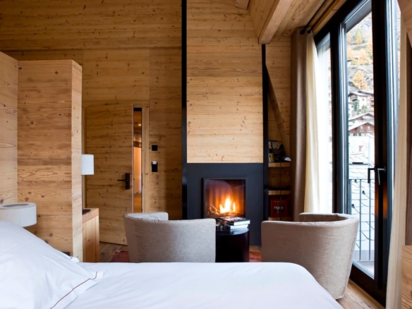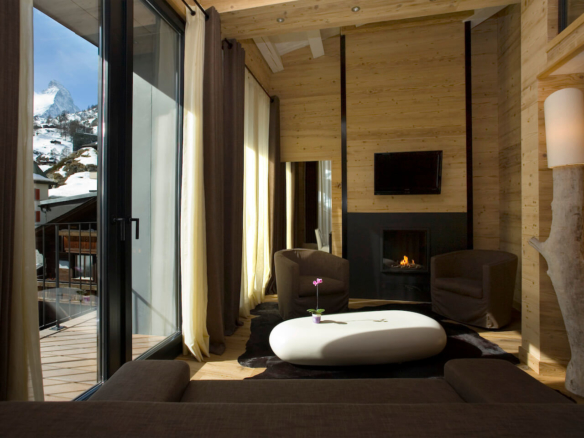These enchanting suites on the 4th floor delight with their high ceilings, large windows and the beautiful view of the village of Zermatt and the surrounding mountains. A small balcony and a cosy fireplace complete the special atmosphere.