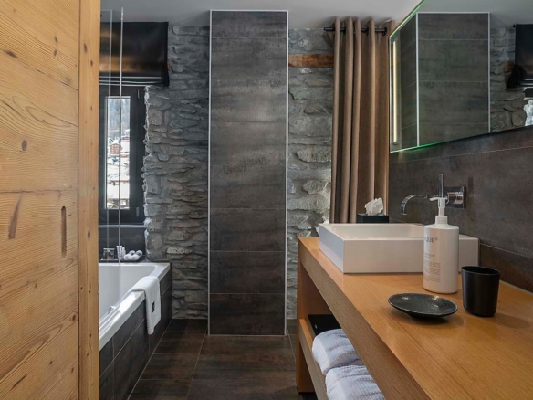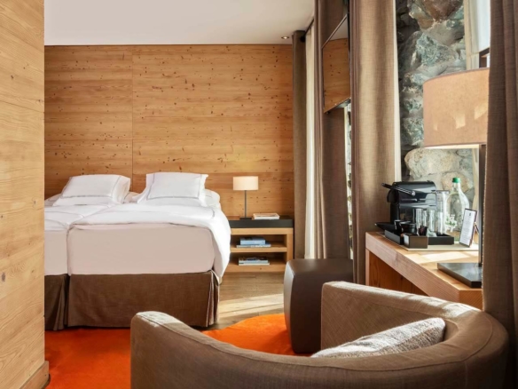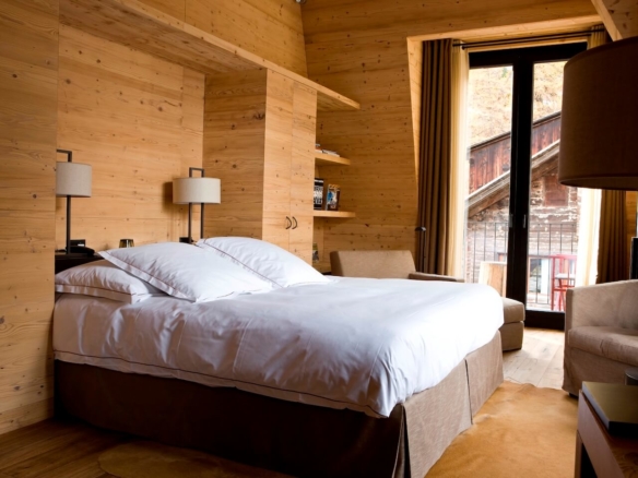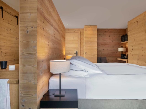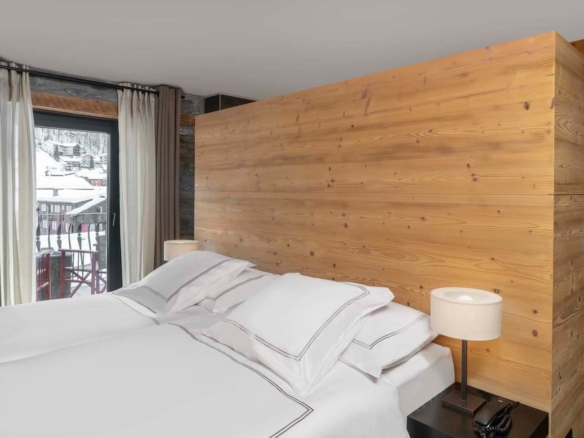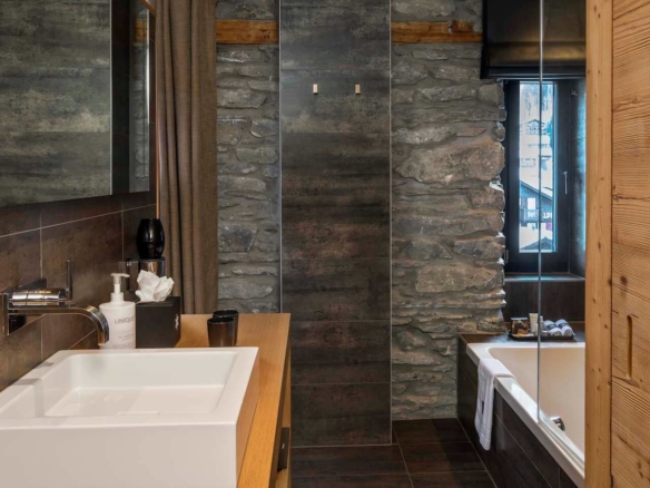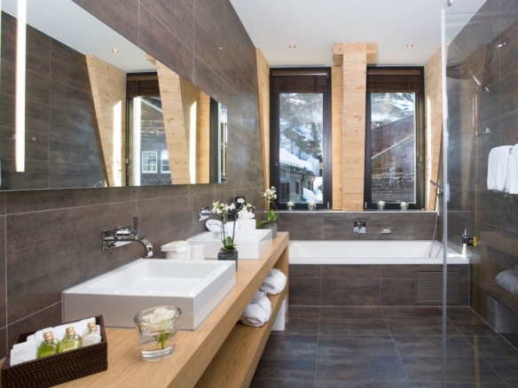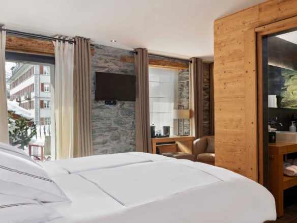 Regional natural material, sandblasted timber, centenarian quarry stone walls with straight, modern design mesh into a fresh, yet authentic mountain holiday experience in all of the rooms and suites – right in the centre of Zermatt. Perfect!