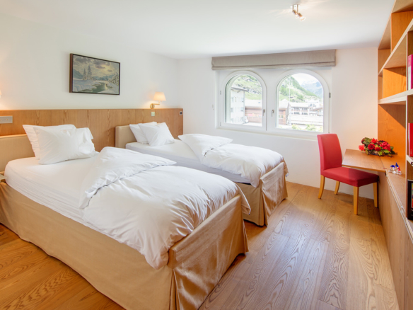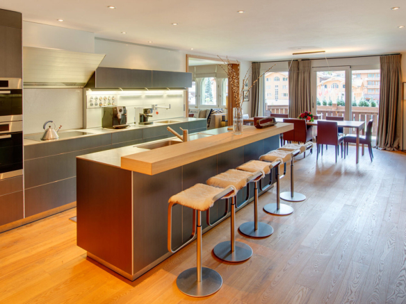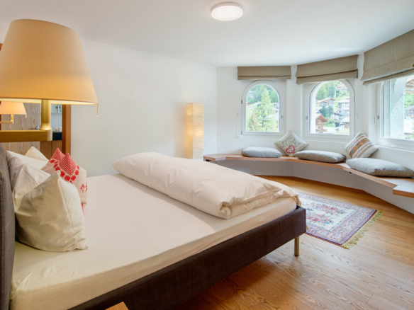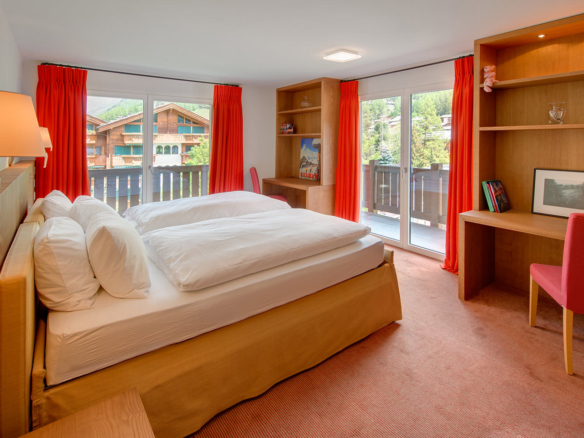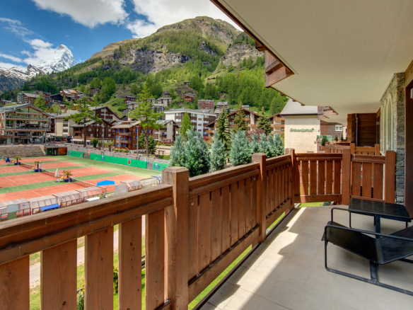 A vast 4 bedroomed apartment in the centre of Zermatt overlooking the ice rink in winter and tennis courts in summer! Modern in design it has views toward the Matterhorn. It has the added benefit of access to the indoor swimming pool of the Schwiezerhof Hotel at certain times of the year.