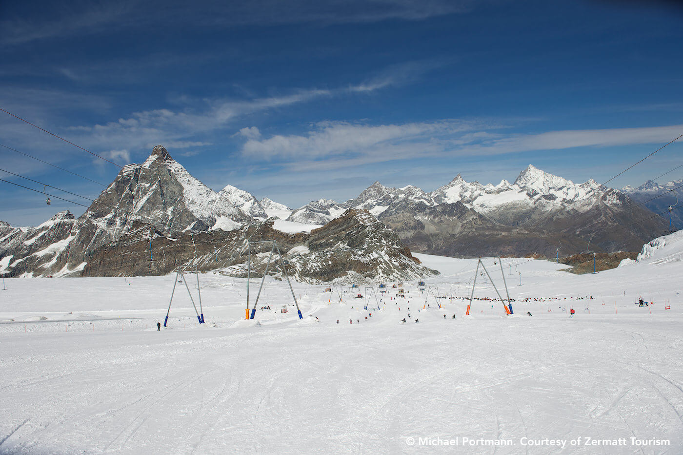 Didn’t get enough of the white stuff in winter? Then Zermatt can answer your desire by providing 21 kms of prepared pistes on the Theodul Glacier set at 3886 m. Whisk yourself up to the Summer Ski Area at Klein Matterhorn, via the amazing 3S gondola, and ski down to the Italian border to take an expresso! The summer snowpark provides an adrenalin adventure with the kickers and jumps for both skiers & snowboarders. Ski with World Cup racers! – the glacier is a favoured training area for many teams, and you can watch in awe from the side of the training pistes.